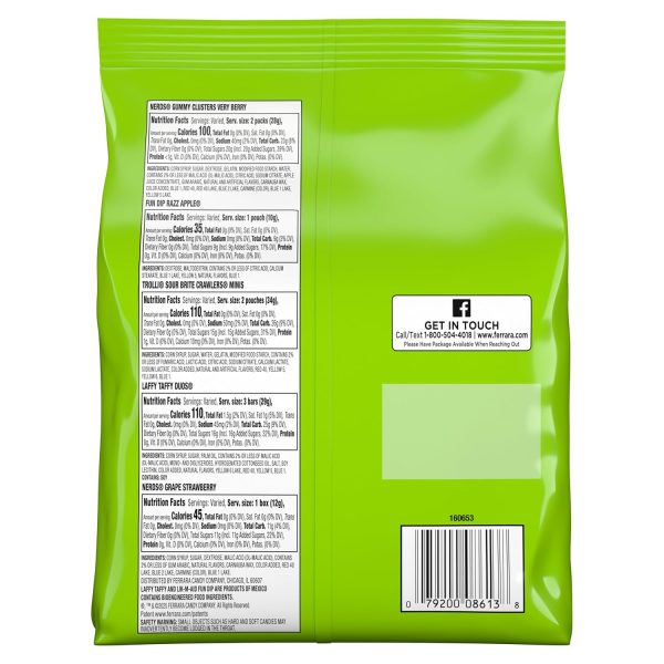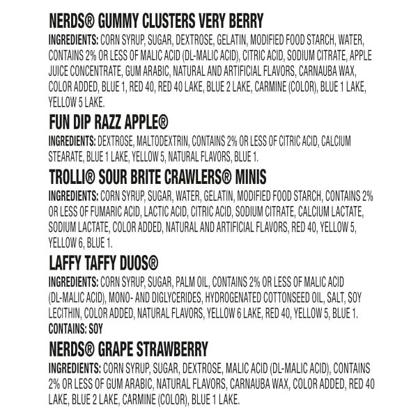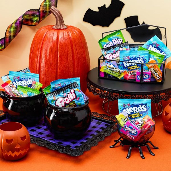 - HALLOWEEN FAN FAVORITES: The Perfect Halloween Candy Haul with our 45-count variety pack. including NERDS Verry Berry Gummy Clusters. Fun Dip Razz Apple. Trolli Sour Brite Crawlers Minis. Laffy Taffy Duos. and NERDS.