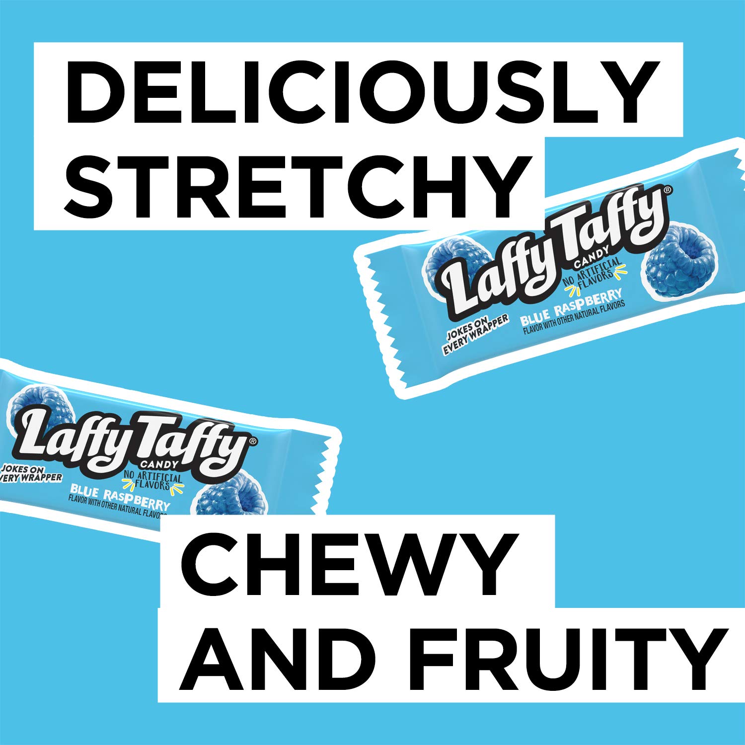 - FRUITY. CHEWY LAFFS: Laffy Taffy is known for its authentic long lasting fruit flavors. smooth & chewy texture. and light-hearted jokes on every wrapper