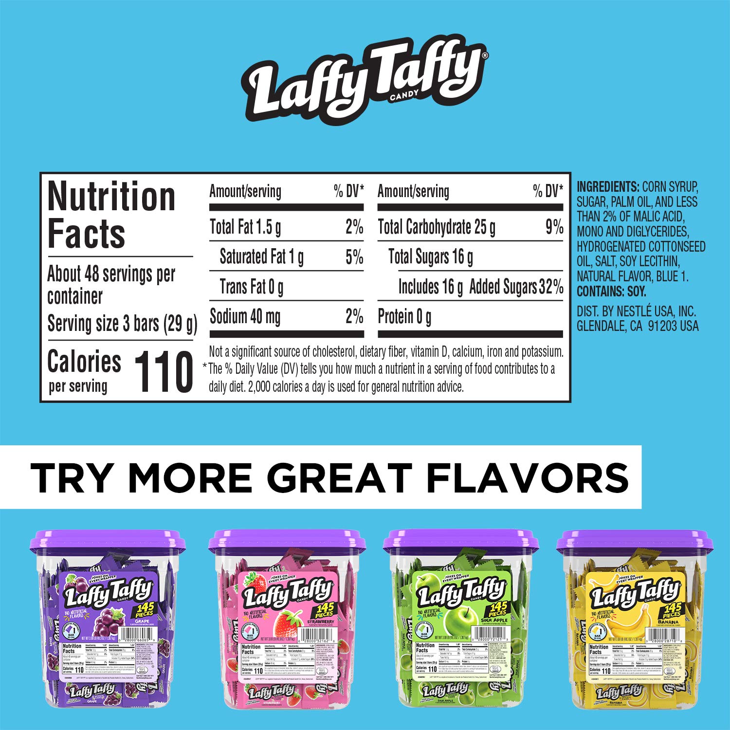 - LEGENDARY FAVORITES AND EXCITING NEW FLAVORS: Laffy Taffy stays focused producing sweet treats for people to share & enjoy every day. from the legendary favorites you love to exciting new flavors!